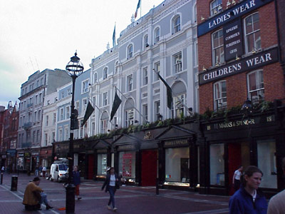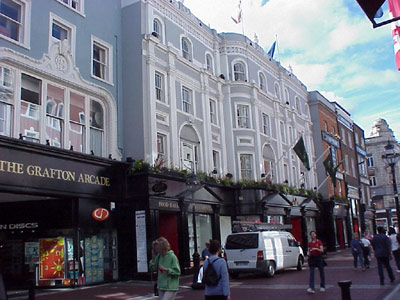 | Later, the Shelleys moved south of the River Liffey to 17 Grafton Street, a building which still exists, now a fashionable grey and white Marks and Spencer department store. No. 17 was the notorious "Cave of Abdullah," so called because of the wild-eyed, wild-haired radical Romantics who called on Shelley there. A useful history of the Grafton Street building and surrounding area can be found in Anne Haverty’s Elegant Times: A Dublin Story (Dublin: Sonas, 1995). |